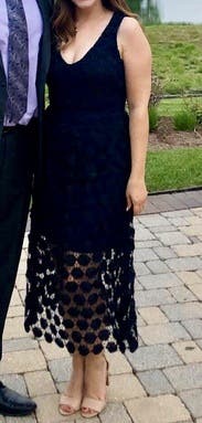 When I first tried the dress on, I was really upset about an unfortunately placed seam that landed right at my midsection. Initially, I thought this focused attention to an area that I don't like to highlight and maybe even made it look bigger. But my fiancé took one look at it and absolutely loved it, so I decided to go with it and got tons of compliments throughout the night and ended up feeling great in it. To top it all off, it was one of the more comfortable dresses that I've ever worn.