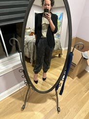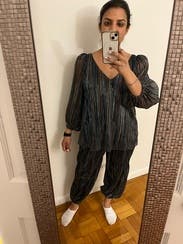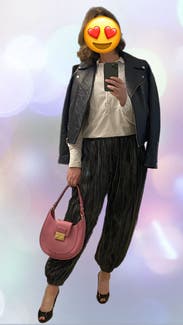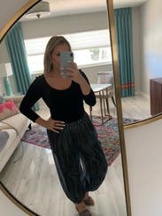These pants are everything! Waistband was perfection...could tuck in a thin blouse or sweater and still feel great. Harem pant vibes and the sparkle was on point...so many compliments. Wish they weren't so expensive...would buy in a heartbeat!