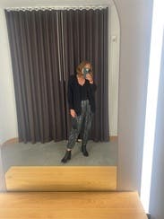 Great fit and super comfortable. Loved the metallic fabric and high rise fit! Wore these to work but could def be paired with a crop top and worn out.