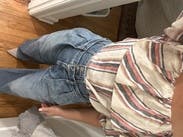 I wore this top with dressy shorts to dress it up for work and then wore it with jeans to go out in. It's a little heavier material that you cannot tell from the pics. It feels like a heavy linen.