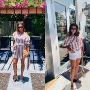 Goes with so many different looks! Wore as the set. Wore with white shorts. Wore with a blush colored skirt (not shown). Beautiful linen fabric! Had a lot of luck wearing the top over and over. Work, everyday and out in the evening for dinner. I have rented the top twice now. It’s a favorite!