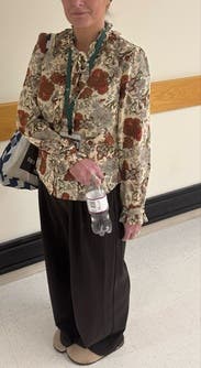 I felt very confident wearing this beautiful , feminine, blouse. It’s perfect for fall and very comfortable. I wore it to work and to church. it paired nicely with tan dressy pants and a tan skirt. It also works well under a cardigan.