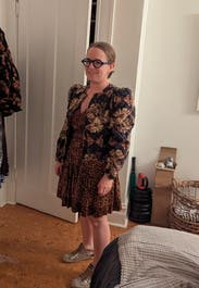Got a million compliments! Fit true to size. Puff shoulder was a fun touch mixed with the print.