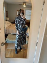 I've rented this twice for early spring date night. This time I wore it at 27 weeks pregnant and it's so flattering and comfortable