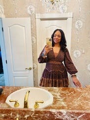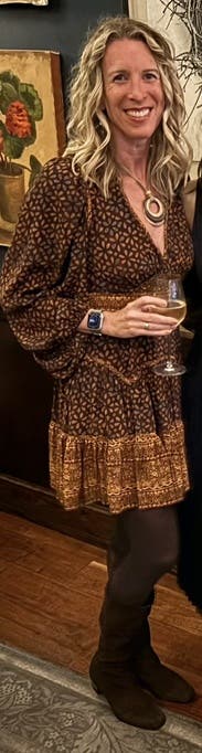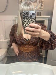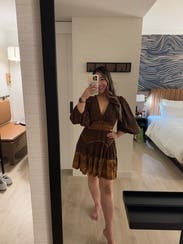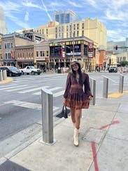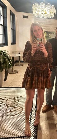 Loved this one! The bold design and flattering fit made it stand out, and it was surprisingly comfortable for daytime and night time . Got so many compliments while wearing it in Nashville.