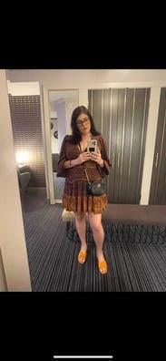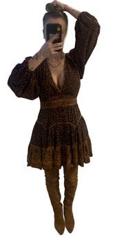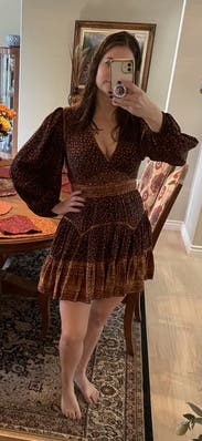 Fun flirty fall dress. I wore this out to dinner and it was so fun. I thought the size fit me well overall. I would rent this again for sure!
