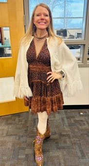 Beautiful flowing, and light dress I would definitely love to rent this again in the summertime. Went perfectly with my brown boots.