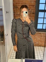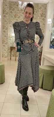 This gingham-print dress is lighter weight than I expected. With its western vibe, I was hoping to wear it over the holidays, but it was too cold. This is a great dress for the fall season and it's perfect if you're feeling like Nashville!