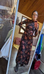 I can’t wait to wear this to a wine bar on Thanksgiving day. It’s so flattering and so comfortable. I could see it being long on a shorter person but on me it was perfect!! Somewhat see through but who cares it’s the perfect dress to stuff yourself silly in on the holiday!