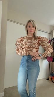 Great fit on this one. I'm loving the Ulla pieces this season. Paired perfectly with high waisted jeans. I was afraid the shoulders would be too poofy but they are just perfect.