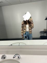 Worn buttoned up or unbuttoned with a white T and jeans! Fit true to size and loved the pattern. Some of the threads were gold and so it shimmered slightly in the sun!