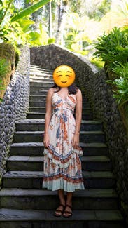 This dress is absolutely beautiful! Wore this for a rehearsal dinner and again for family photos on the beach. Chefs kiss!!! Almost 6 months pregnant so I ordered one size up and it fit perfectly! One thing to note, from waist down this dress is a little see-through when light hits so maybe just wear a slip underneath.