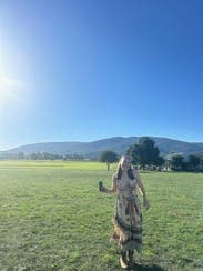 I love this dress and have rented it before. Easy and comfortable to wear. Flowy and feminine with adjustable tie shoulder straps