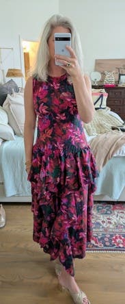 I’ve never gotten so many compliments on a dress. If drop waist makes you nervous, try this dress and you’ll completely change your mind! Extremely flattering, very comfortable, and the perfect amount of ruffles to give your look a little drama. Wore this to a cocktail/semi formal outdoor wedding and it was perfect.
