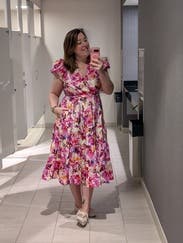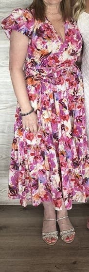 Loved this dress and got so many compliments! The puffy sleeves are a bit much but otherwise it’s great. It also has pockets so that’s always a win. Thought about keeping it but more than I want to spend. Fit me great.