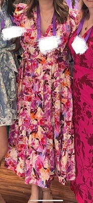 Really pretty dress for any sort of garden party or shower. Nice material and really pretty colors. Fit tts and was a great length.
