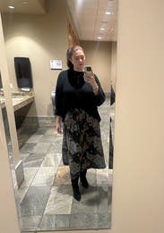 This skirt felt really nice to wear, it was so silky soft! It buttons up the front but is a little hard to tell since the buttons are covered and the amount of fabric. I didn’t love the pattern, was giving grandma vibes.