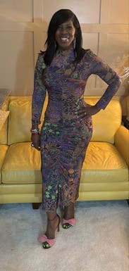 Obsessed with this brand — the fits are always so flattering, and the prints feel like wearable art. This dress was a super hit. I wore it to a city-hosted cocktail event during Magic City Classic week and stood out all night. Comfortable stretch, great ruching, and so many compliments. 10/10 — highly recommend!
