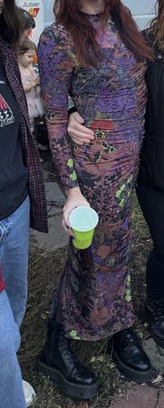 Wore to officiate a small wedding in Central Park. Felt hip and casual enough while still being formal. The ruching is super flattering. Note that the material is not warm!