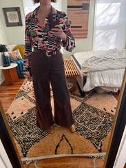 I knew the print was gonna be funky but the cut/shape and the pattern was just a little TOO funky for me, as a work piece. Maybe with a black leather pant it would for going out/dinner would be a different vibe. I’m normally an XS or S and had to go M here.