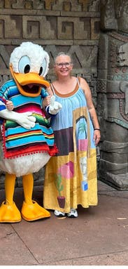 I love this dress. It’s comfortable. It’s a little sexy with the low back. And the colors are beautiful for a summer day traveling or at home.