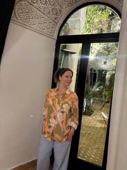 This top was great and I wore it multiple times in my rental. Work, travel, etc. loved the oversized fit and colorful fabric.
