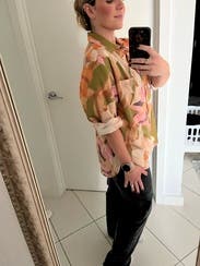 Love the print on this shirt and the buttons in back the most. Sized down due to other reviews, and while I could have taken it a TAD more oversized, the XS fit just right.