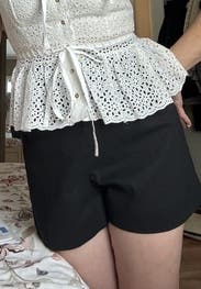 Black (39% Cotton, 32% Linen, 28% Viscose, 1% Elastane). Shorts. Side zipper closure. Inseam: 3". Rise: 15". Imported.
