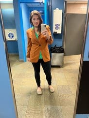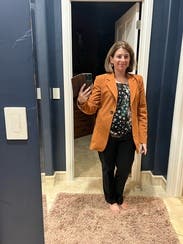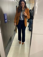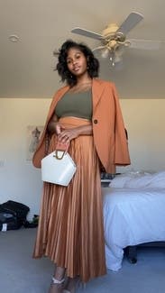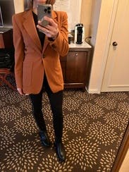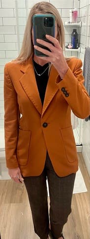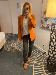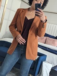 Love the burnt orange color of this blazer! It was a little long for my petite frame, But still looked good in my opinion