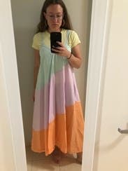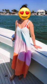 I felt great in this dress. I thought the colors were not my thing, but ended up loving them. They matched the sunset on the Florida Gulf Coast perfectly. Also, it has adjustable straps, which are perfect for a rental. I wore it to dinner on the beach, over a swim suit during the day and with a jean jacket. I wish I would have bought it!