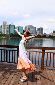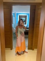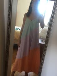 Loved the colors and flowiness of the dress. I felt it ran a little large on me but my chest / torso is smaller with a wider waist / butt. It did show some sweat (or water if you're near it) so be careful with that. Overall I'd probably rent again for a vacation.