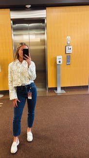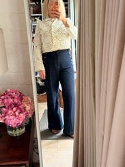 Loved this jacket felt very sophisticated and fancy in it. Elevated jeans and tee shirt and perfect for these in between weather weeks. Would have kept it if wasn’t so expensive!