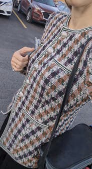 You cannot go wrong with a Veronica Beard blazer. They fit me perfectly!! This I wore buttoned, as most and truly looks the best. Paired with my SJPs was a perfect match! Fully lined even through the arms…great, right?!? Semi-weight, but was not hot. Great hardware/pattern🥰