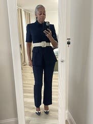 Rented this with no intention to buy, and I got so many compliments that I had to purchase it. It’s hot where I live so I like that it’s short sleeved, but still professional. The fit is flattering for my shape, and creates a bit of an hourglass illusion. Love it!