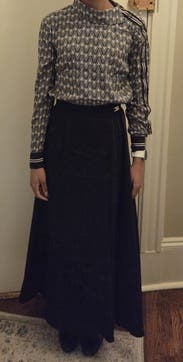 This top got so many compliments. The material is luxe, and the shape and options for button use and placement are really interesting and cool.