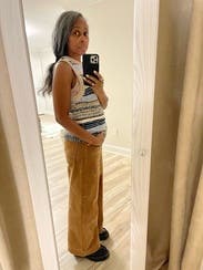 Wore with my 23 week bump and had the slightest belly poking out which was so cute, would def rent again!