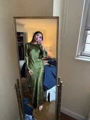 The dress was such a vibe! Wore it on a date night with boots. You could definitely dress it up. It’s very flattering and so beautiful in person. I was absolutely feeling myself in this dress! RENT!