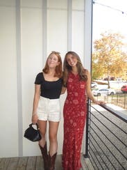 Styled with white button down and laced up sandals.