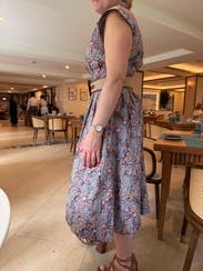 Beautiful paisley dress! I sometimes have issues with gapping when dresses button up and I had no problems with this dress. Great spring time dress for work, dinner or Mother's Day!