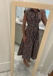 This is the perfect work dress. The belt cinches you in and is super flattering. The paisley print is fresh, and the color is great for summer into fall. I couldn’t send it back, so I purchased it!