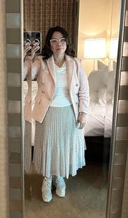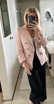 Surprisingly perfect. I usually don’t do pinks but loved the fit and the tweed was super comfortable.