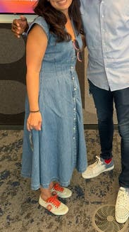 Dressed down a bit for work with sneakers but could definitely have dressed it up. Really comfortable and cute. A little tight in the bust for larger chest (G/H)but the buttons didn’t gape noticeably.