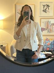 Loved the seersucker for summer. Fit my short torso perfectly and did not overwhelm me like so many of the bulky oversized blazers of late. Cute over a dress or with linen shorts. Will rent again.