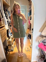 I loved this dress. I wanted to buy it! It fit perfectly. It wasn’t too short or tight around my bottom. 10/10 would recommend.