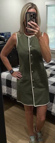 This is the perfect work dress. It looks better in person than it does in the picture I took. It's form fitting and flattering. I am normally a 4/2 and the 2 fit great!