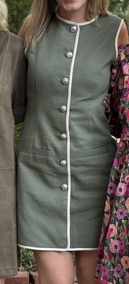 Veronica Beard’s Whistler Dress is a crisp, tailored mini with standout contrast piping, a button-front detail, and handy welt pockets, bringing a fresh, modern twist to modern dressing. Effortless in warmer months: pair it with slingback flats and a woven tote for a perfectly polished daytime look.
