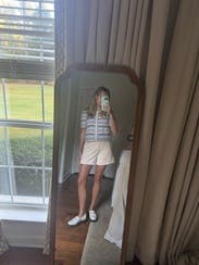 Wore this with white linen shorts and beige Prada loafers to my daughter's year-end school ceremony. Got tons of compliments and felt very put together. Highly recommend!