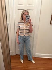 Loved the colors, texture, and weight of this jacket. Elevated the white jeans and tank for work.