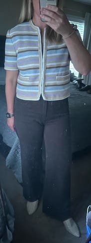 On trendy, very put together look. Fit perfect and really great quality. Got LOTS of compliments.