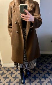 Obsessed with this coat. Would buy it right now if it wasn't so $$$ but that's why I love RTR. The shape is so flattering and the color is delicious. Great for 30-40 degree weather.
